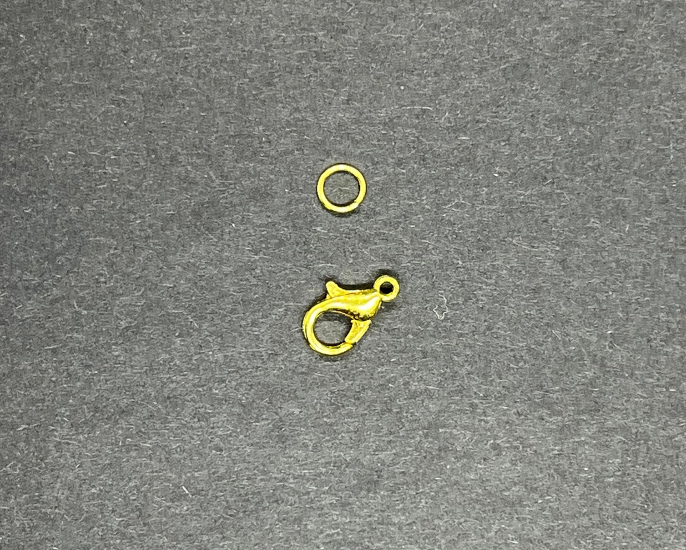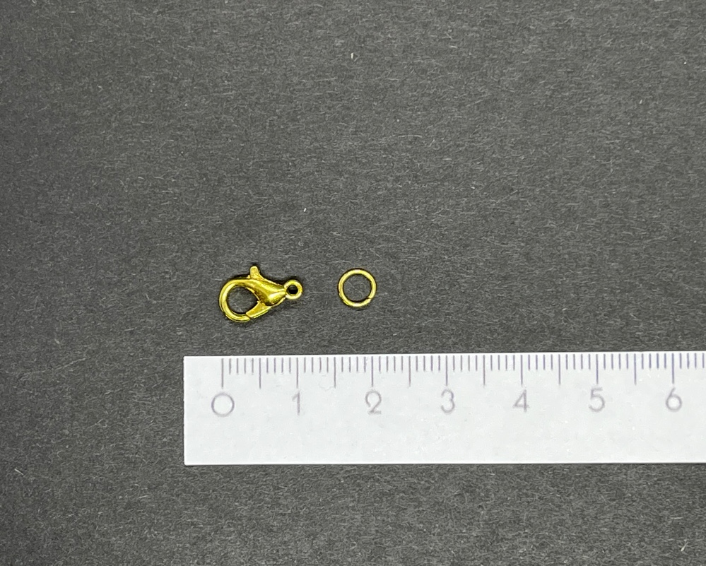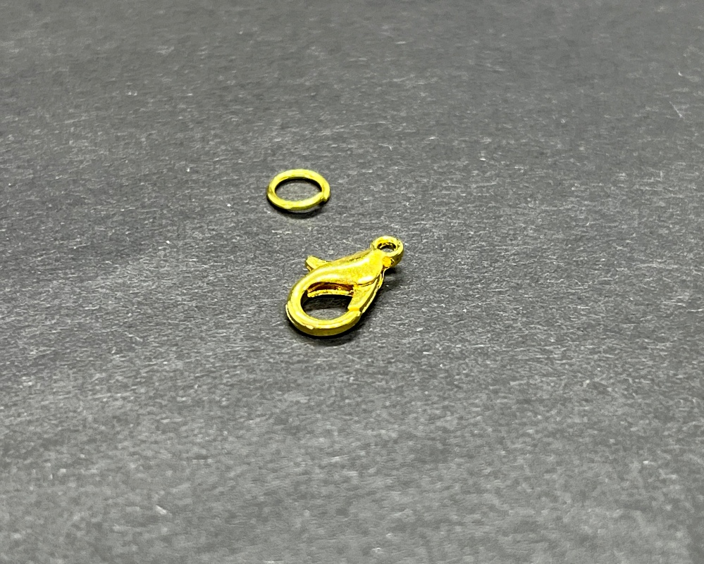 Farbe: Gold glänzend Der Farbton ist richtig "gelbgold" Im Gegensatz zu den Hängerchen hat der Karabiner natürlich keine richtige Vorder- oder Rückseite.