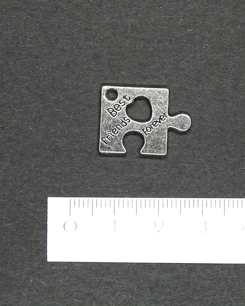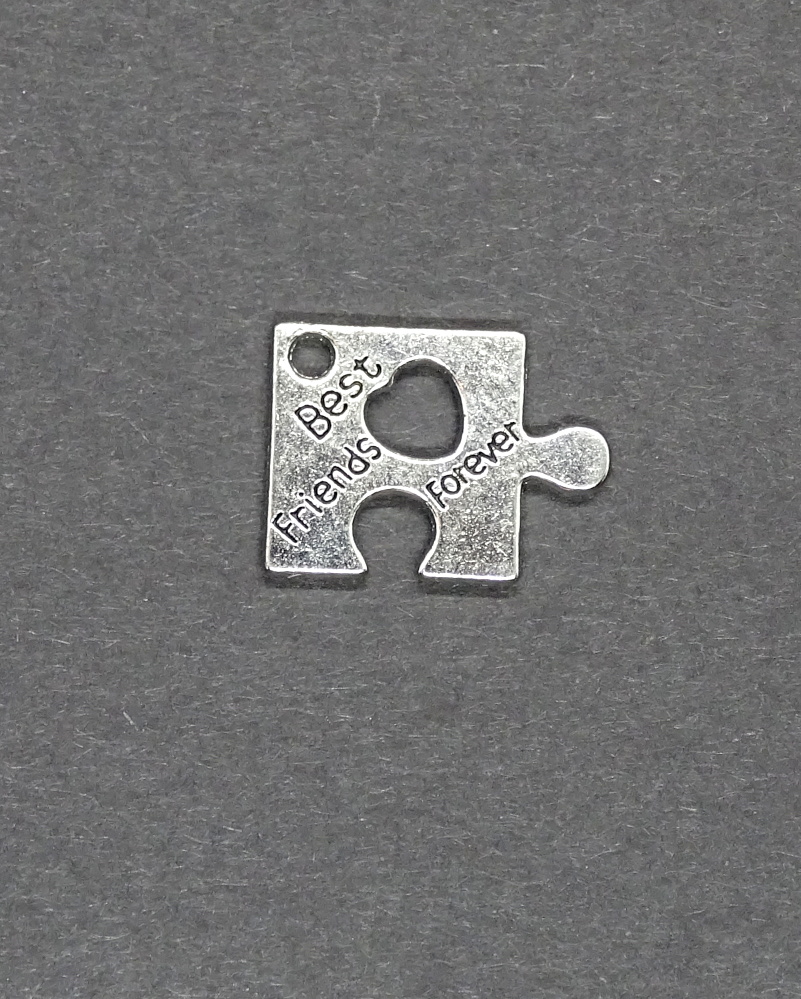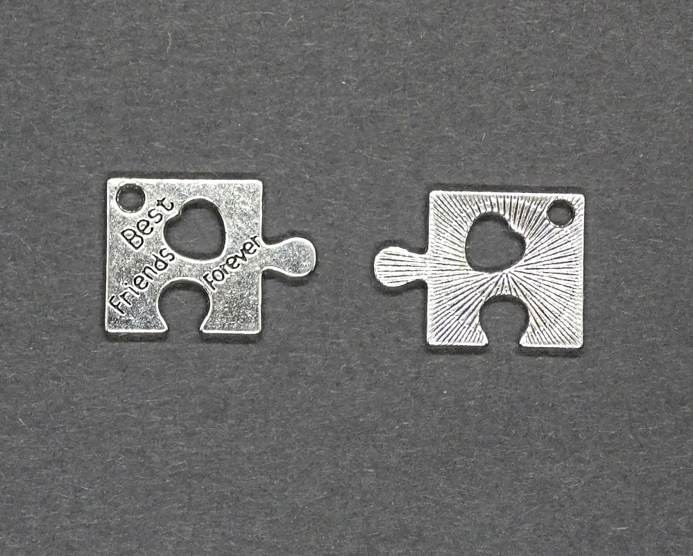 Vorderseite ist geprägt mit dem Ausspruch "best friends forever" (Beste Freunde für immer). Die Rückseite hat ein strahlenartiges Muster. Mittendrin ist ein Herz.