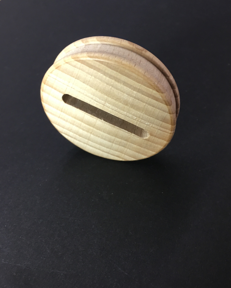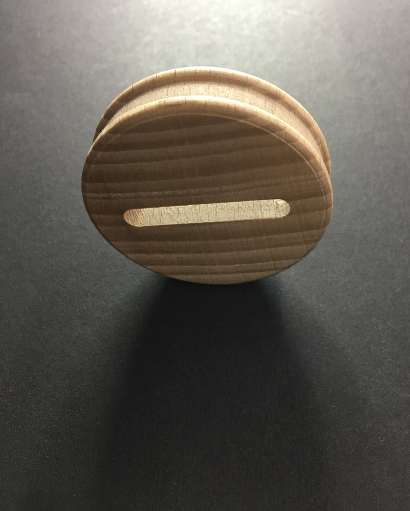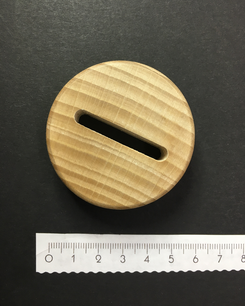 Die Scheibe ist rund, mit einer umlaufenden Vertiefung, damit der Sparstrumpf auch hält, wenn er mal voller ist. :)