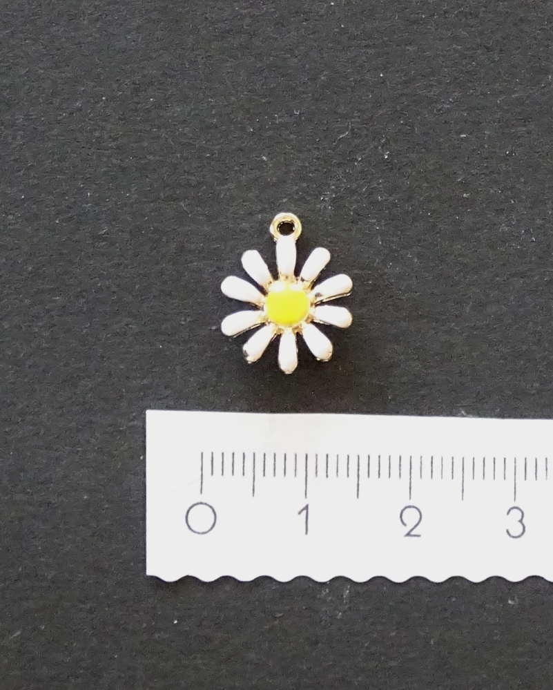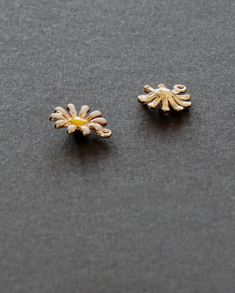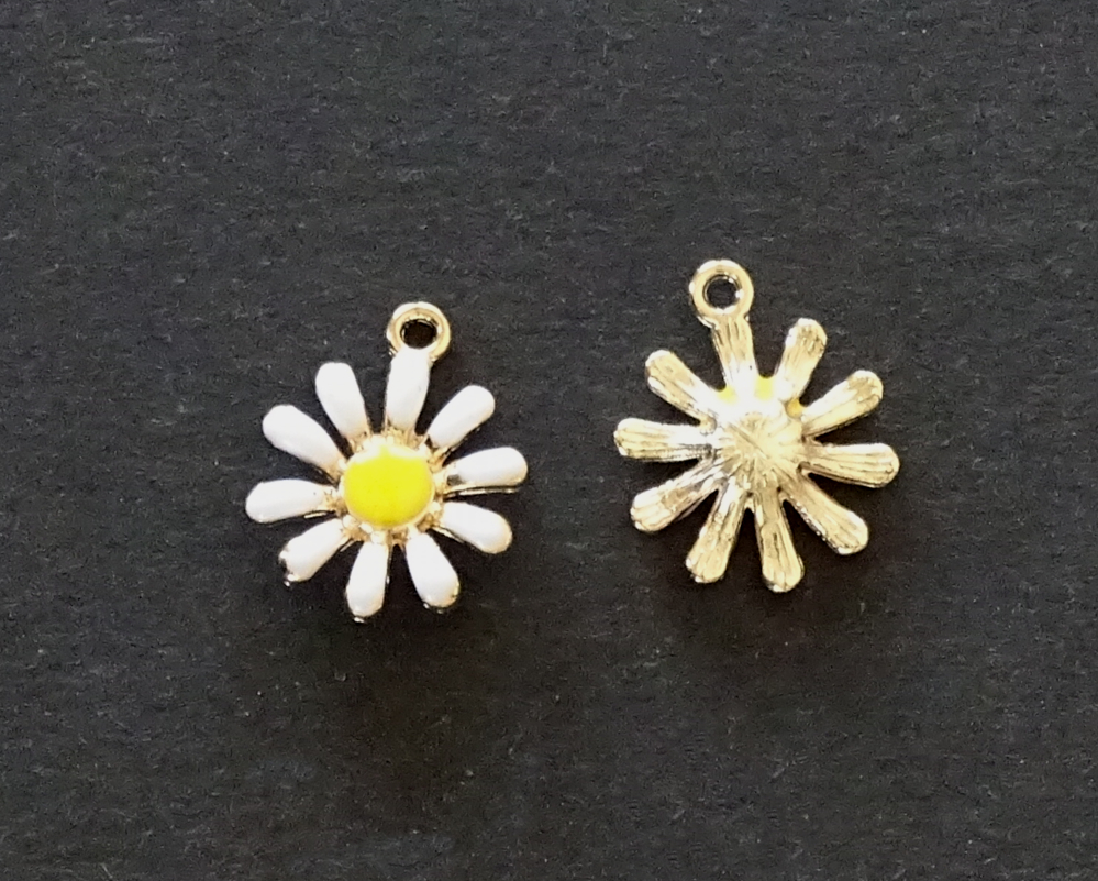 Die Vorderseite ist geprägt/ gefärbt. Die Rückseite ist gewölbt, so dass es wie eine richtige Blüte aussieht und leicht golden gefärbt. Bitte darauf achten: diese Hänger mögen keine Waschmaschinenwäsche!