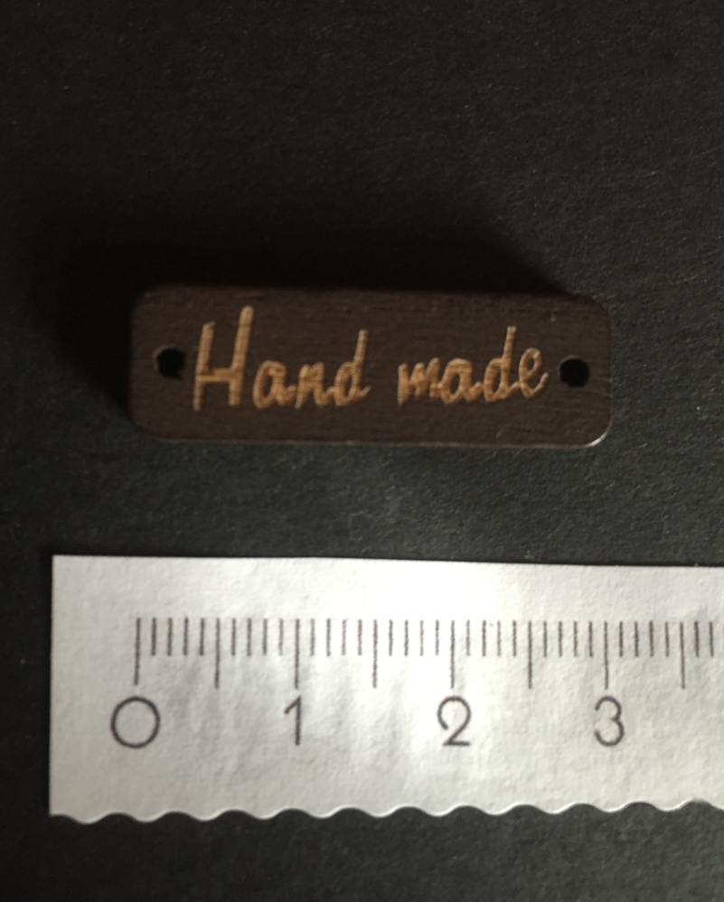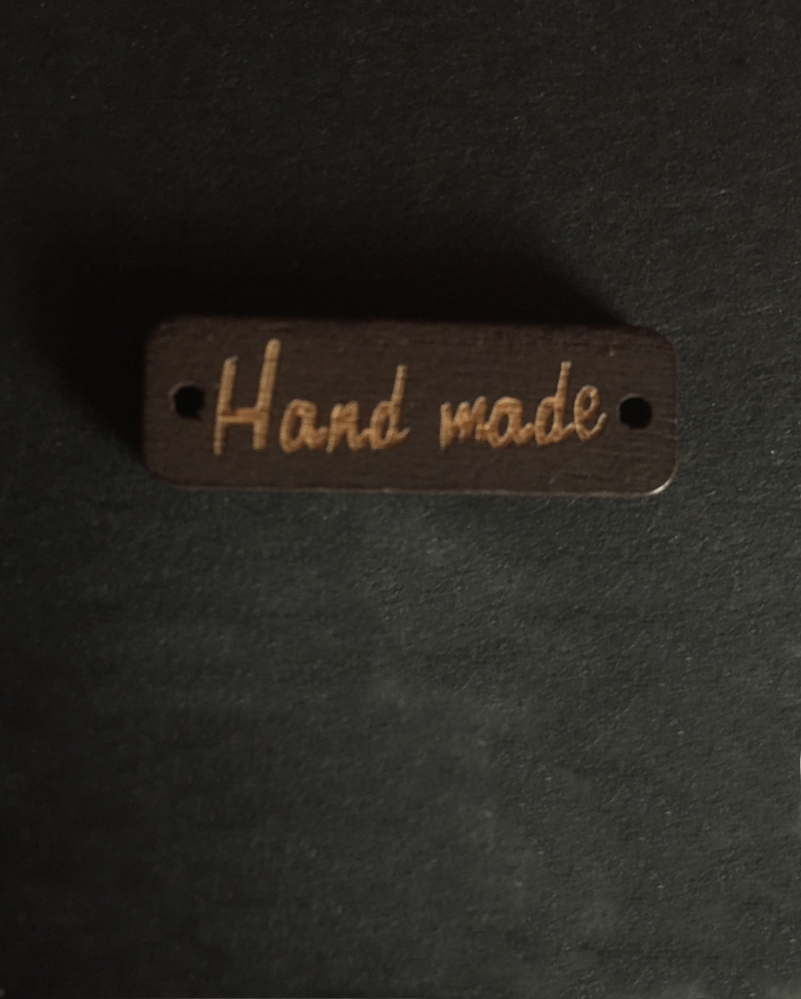 Das Schildchen ist geprägt mit dem Schriftzug "Handmade" (Handgemacht/ Handgefertigt).